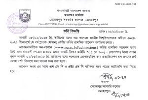 ২০২৪-২৫ শিক্ষাবর্ষে অনার্স ১ম বর্ষ ভর্তি সংক্রান্ত বিজ্ঞপ্তি