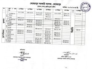ডিগ্রি পাস ১ম বর্ষের ক্লাস রুটিন