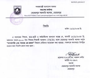 মেহেরপুর সরকারি কলেজ কর্তৃক “মাদকাসক্তি এবং এর প্রভাব” বিষয়ক সেমিনার সংক্রান্ত নোটিশ