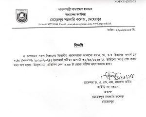 ২০২৩-২৪ শিক্ষাবর্ষের অনার্স ১ম বর্ষের ইনকোর্স পরীক্ষা সংক্রান্ত বিজ্ঞপ্তি