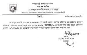 ২০২৪-২৫ শিক্ষাবর্ষে একাদশ শ্রেণিতে ভর্তিকৃত ছাত্র-ছাত্রীদের ছাড়পত্র (TC/BTC) এর মাধ্যমে ভর্তি সংক্রান্ত বিজ্ঞপ্তি