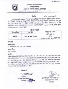 দ্বাদশ নির্বাচনী আইসিটি বিষয়ের পরীক্ষা সংক্রান্ত নোটিশ