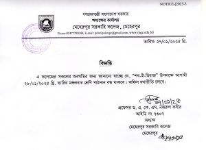 ‘শব-ই-মিরাজ’ উপলক্ষে শ্রেণি পাঠদান বন্ধ সংক্রান্ত নোটিশ