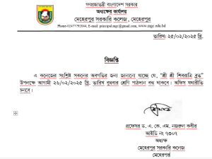শ্রী শ্রী শিবরাত্রি ব্রত উপলক্ষ্যে শ্রেণি পাঠদান বন্ধ সংক্রান্ত নোটিশ