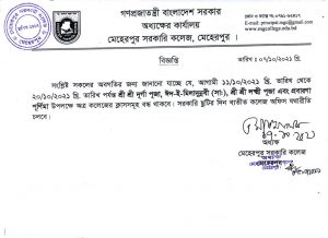 শ্রী শ্রী দূর্গাপূজা, ঈদ-ই-মিলাদুন্নবী (স:), শ্রী শ্রী লক্ষী পূজা এবং প্রবারণা পূর্ণিমা উপলক্ষে ছুটির নোটিশ